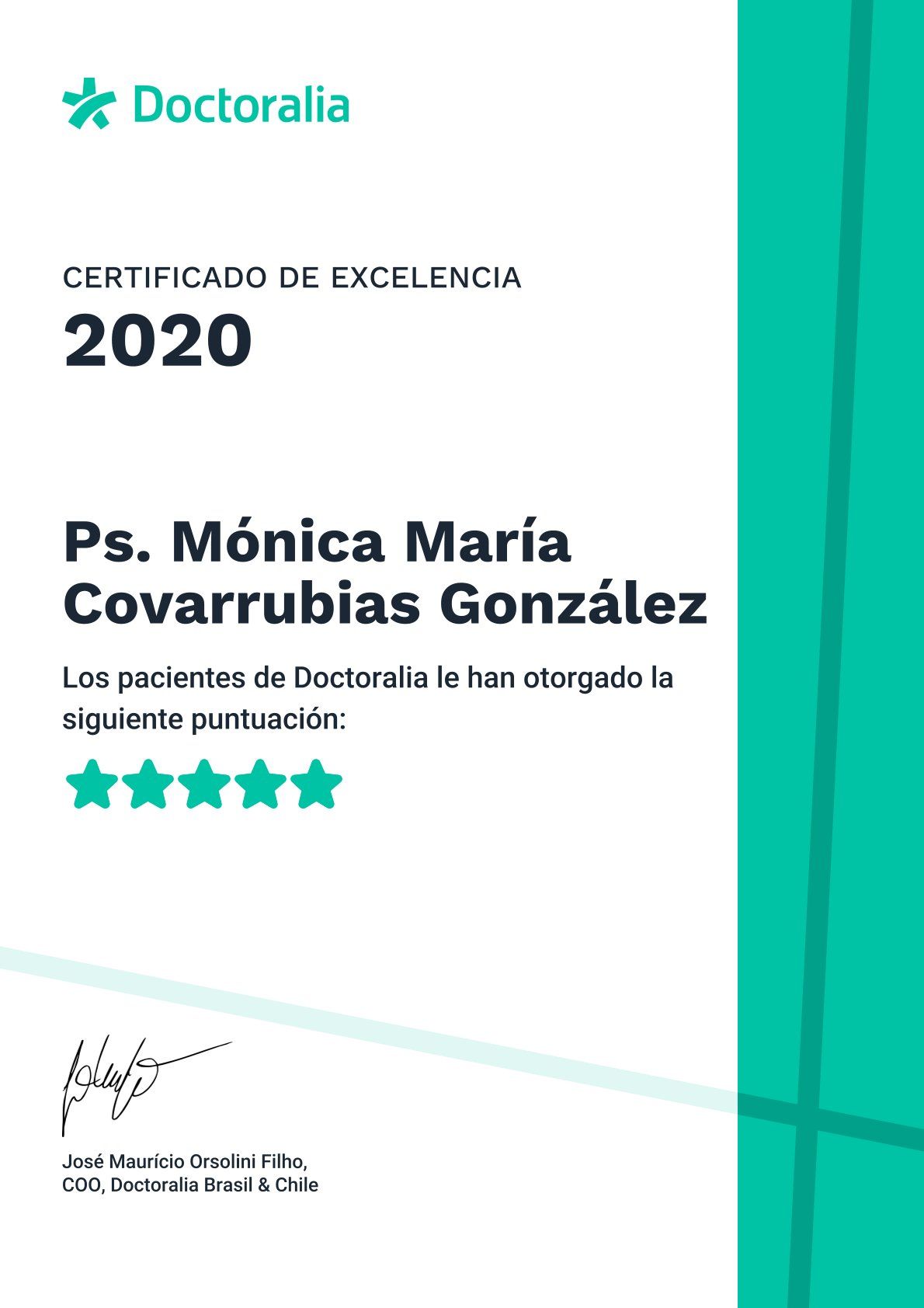 Creo que Ps. Mónica Covarrubias, es directa y asertiva en el modo de evaluar y posteriormente enfocar la Terapia. Busca utilizar la mayor cantidad de recursos disponibles, para que uno pueda comprender mejor que te sucede y dar una mejor solucion a los problemas.
